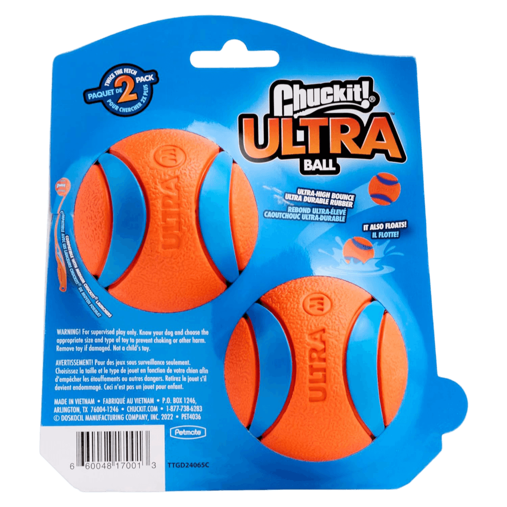 Turn every game of fetch into a splashy, high-flying adventure with the Chuckit! Ultra Ball 2-Pack. These bright orange and blue balls boast next-level bounce, buoyancy and durability-perfect for throwing, kicking or launching, whether you're in the backyard or by the water. Compatible with all Chuckit! launchers, they'll keep your pup leaping, paddling and fetching without limits.