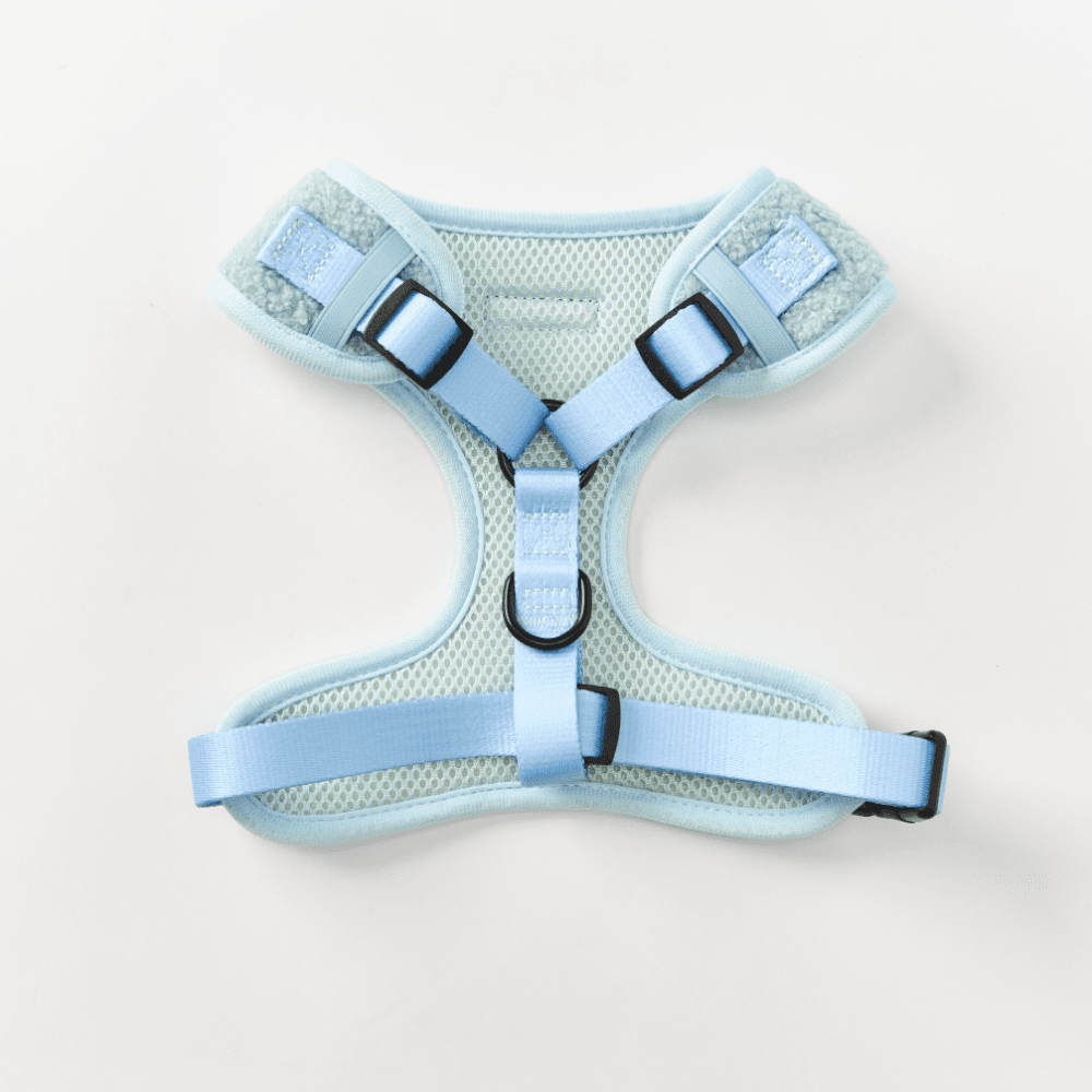 The Cocopup London Dog Harness in Teddy Daydream brings dreamy blue teddy plush that's gentle on fur and snug against the chest. The adjustable fit keeps everything secure without pinching. Cosy comfort, calm control and cute as anything.