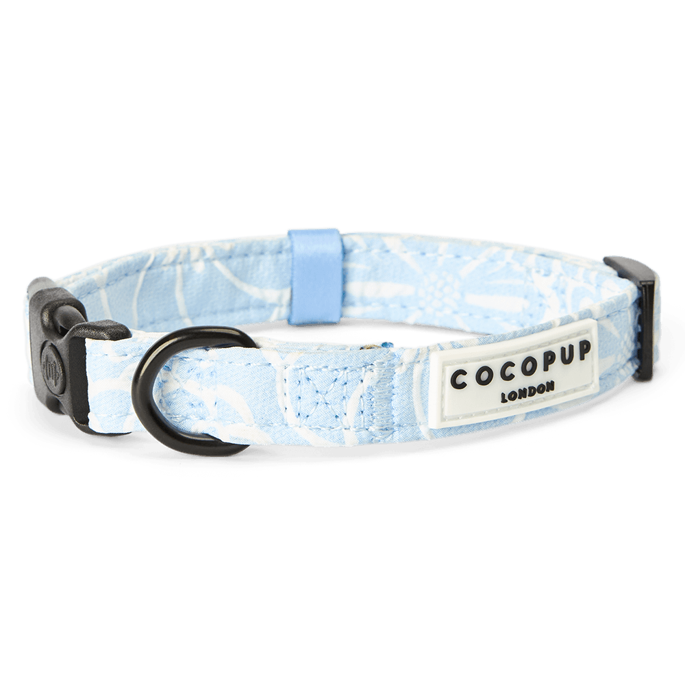 The Cocopup London Dog Collar in Baby Blue Flower brings soft, pastel charm with a lightweight, comfy wear your pup can enjoy all day. The adjustable strap helps you find the sweet spot, and the D-ring keeps leads and tags sorted. Sweet, simple and stroll-ready.