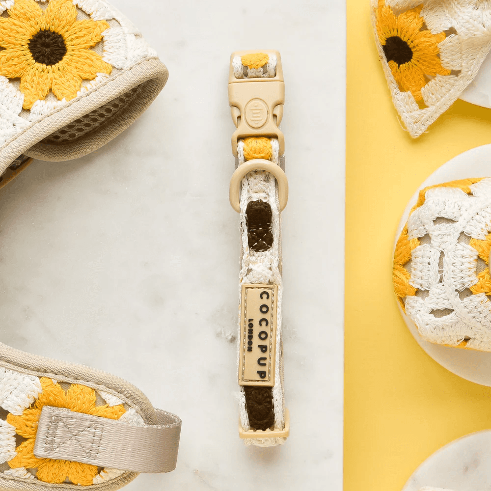 Cocopup London Crochet Dog Collar in Sunflower Patch