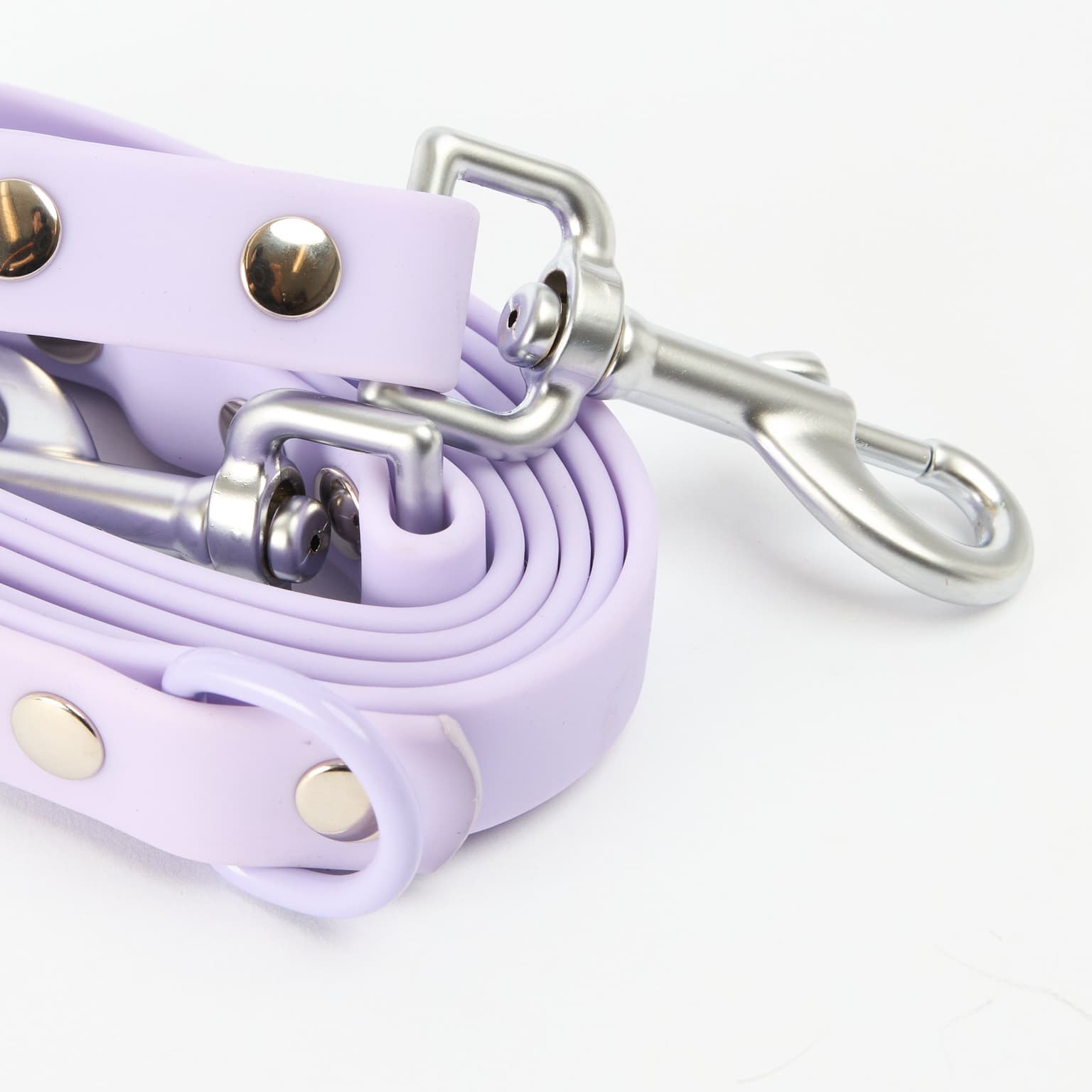 The Cocopup London NAKD Silicone Dog Lead in Parma Violets pairs pretty lilac with waterproof simplicity. A smooth swivel clip, a poop-bag D-ring and a 152 cm - 2 cm strap keep walkies neat from curb to cafe.