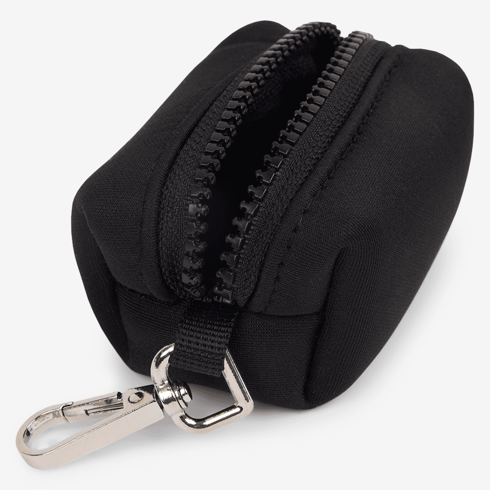 - Holds up to two poop bag rolls