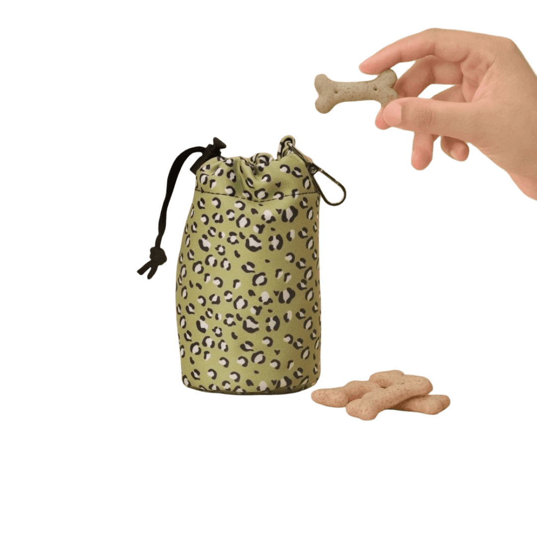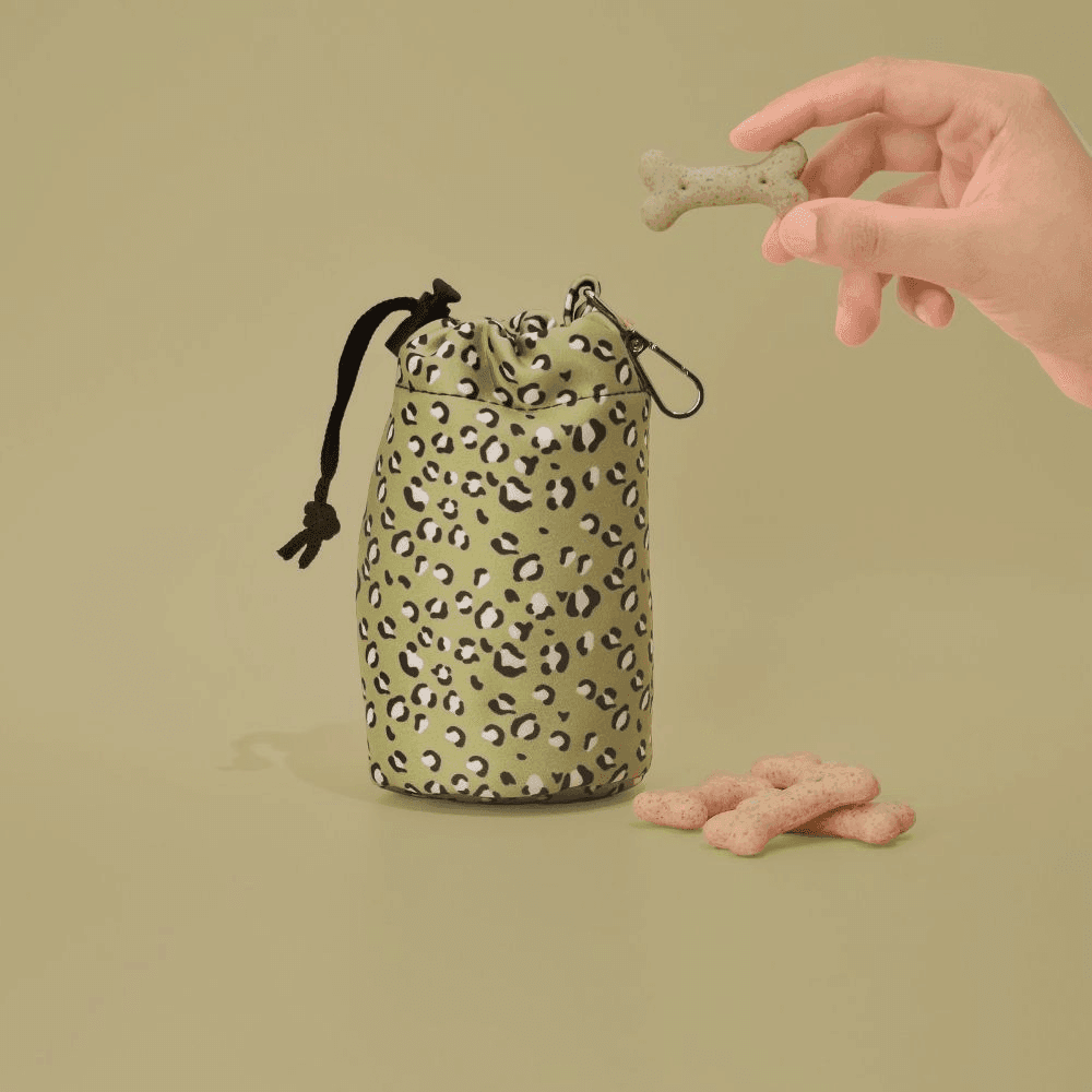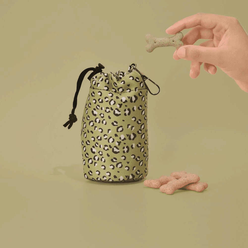 Cocopup London Drawstring Dog Treats Pouch Sage Leopard