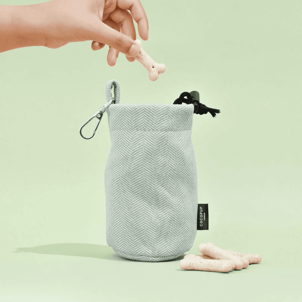Cocopup London Drawstring Dog Treats Pouch Sage Tweed