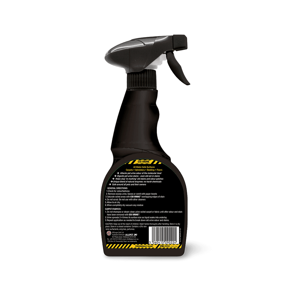 Target the toughest stains and odours with CSI Urine Cat Stain And Odour Remover. This powerful formula works at the molecular level to eliminate pet messes and discourage remarking. For further insights on pet behaviour and how to maintain a clean home, our resource on feline toileting issues offers valuable information. Expand your pet care arsenal by exploring our full range of Cat Stain and Odour Removers.