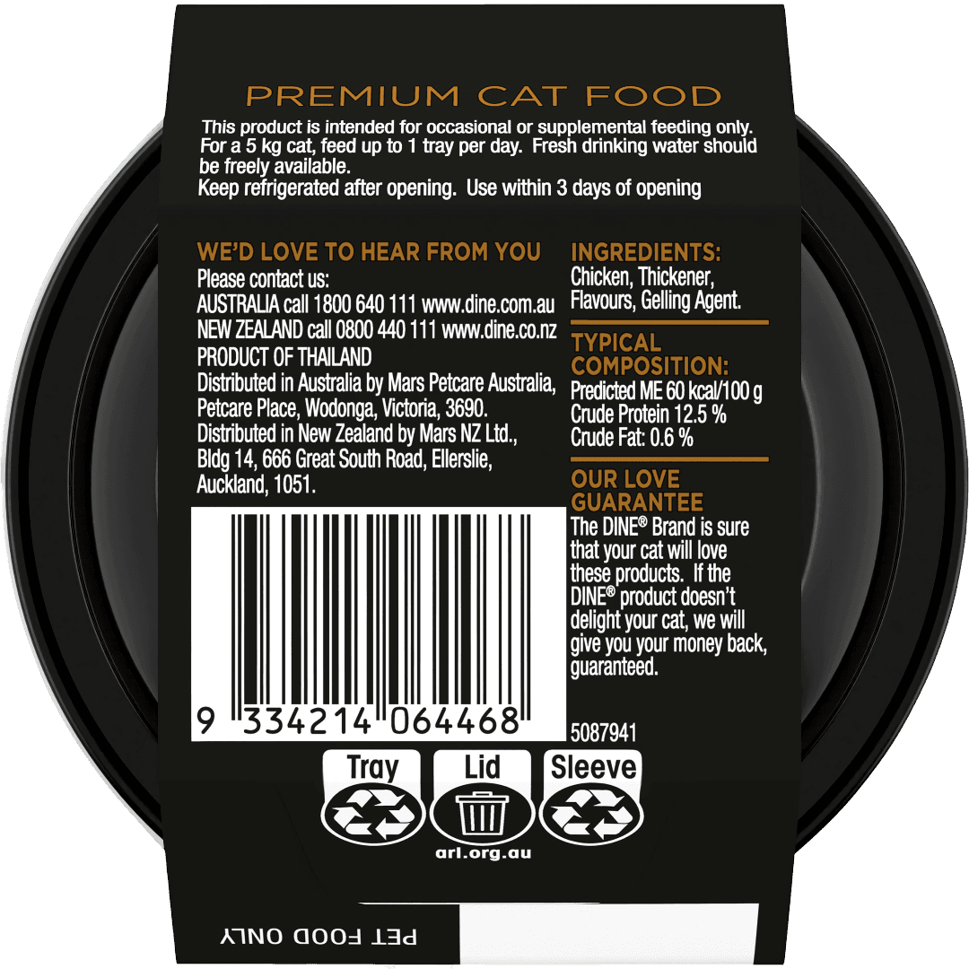 The Dine Fillets Natural Shredded Chicken Wet Cat Food Tray offers a gourmet meal with tender pieces of real chicken served in a delicate gravy. Crafted by Dine to be an irresistible daily indulgence, this pure recipe is made from high-quality ingredients without any artificial colours or preservatives.