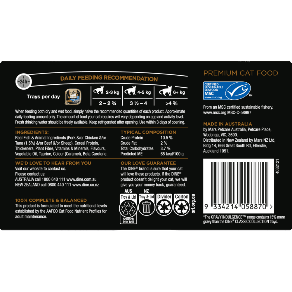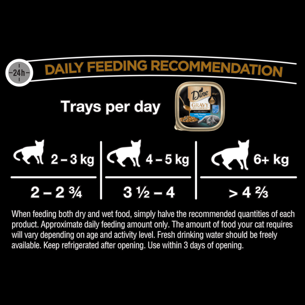 Satisfy your cats craving for gourmet meals with the Dine Pulled Menu Gravy Indulgence with Tuna Wet Cat Food Tray. Crafted with care in Australia, this mouth-watering dish will delight your kitty with its succulent tuna and savoury gravy.