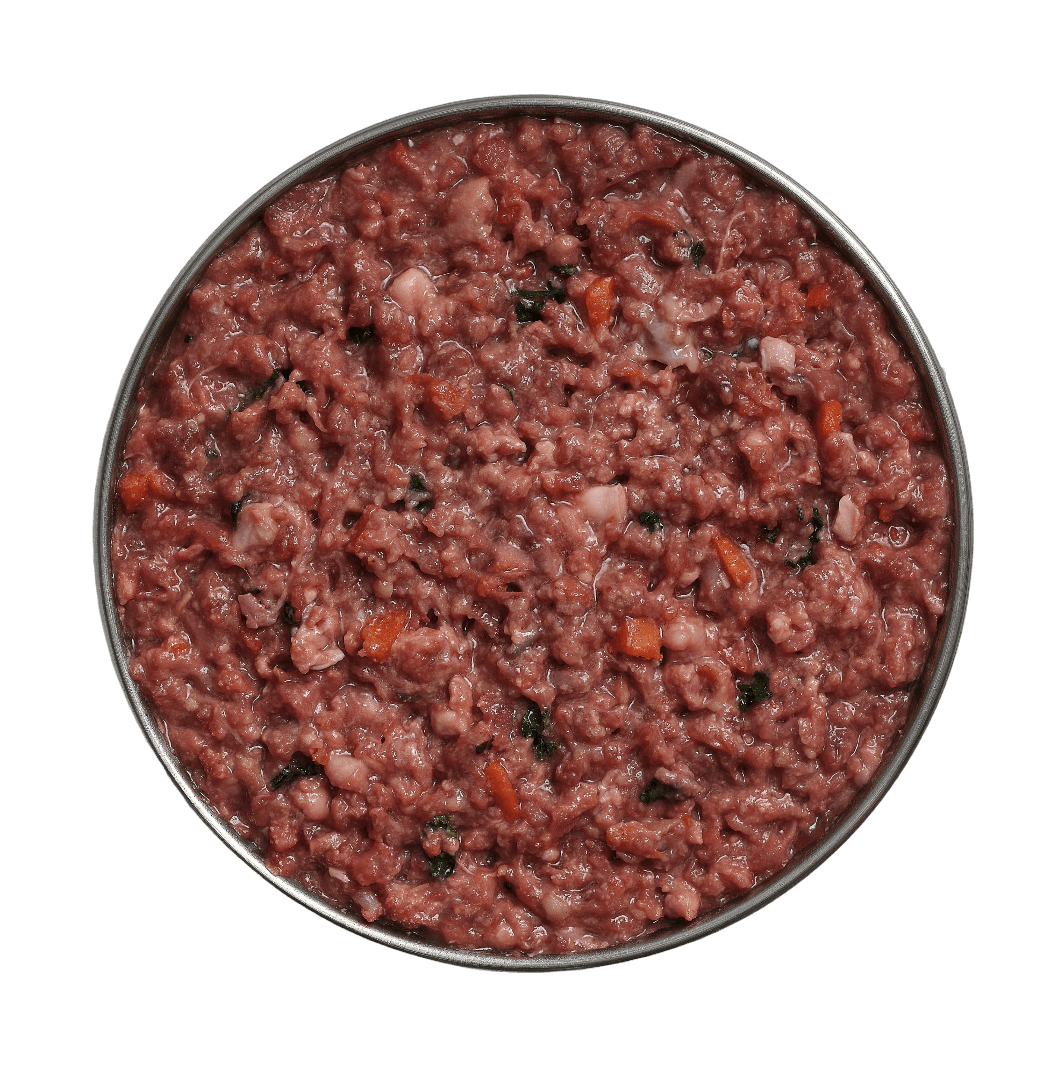 Chicken, Beef, Pork and/or Lamb (includes meat, finely ground bones and offal), Carrots, Apples, Salmon Frames, Yoghurt, Whole Eggs, Spinach and/or Silverbeet, Oranges, Cabbage, Alfalfa, Dehydrated Kelp, Flaxseed, Celery, Garlic, plus other assorted seasonal vegetables and /or fruits