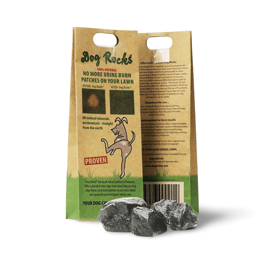 - Dog Rocks absorb excess nitrates and other trace elements from your dog's water, which are the main cause of urine burn patches on lawns, shrubs, and hedges