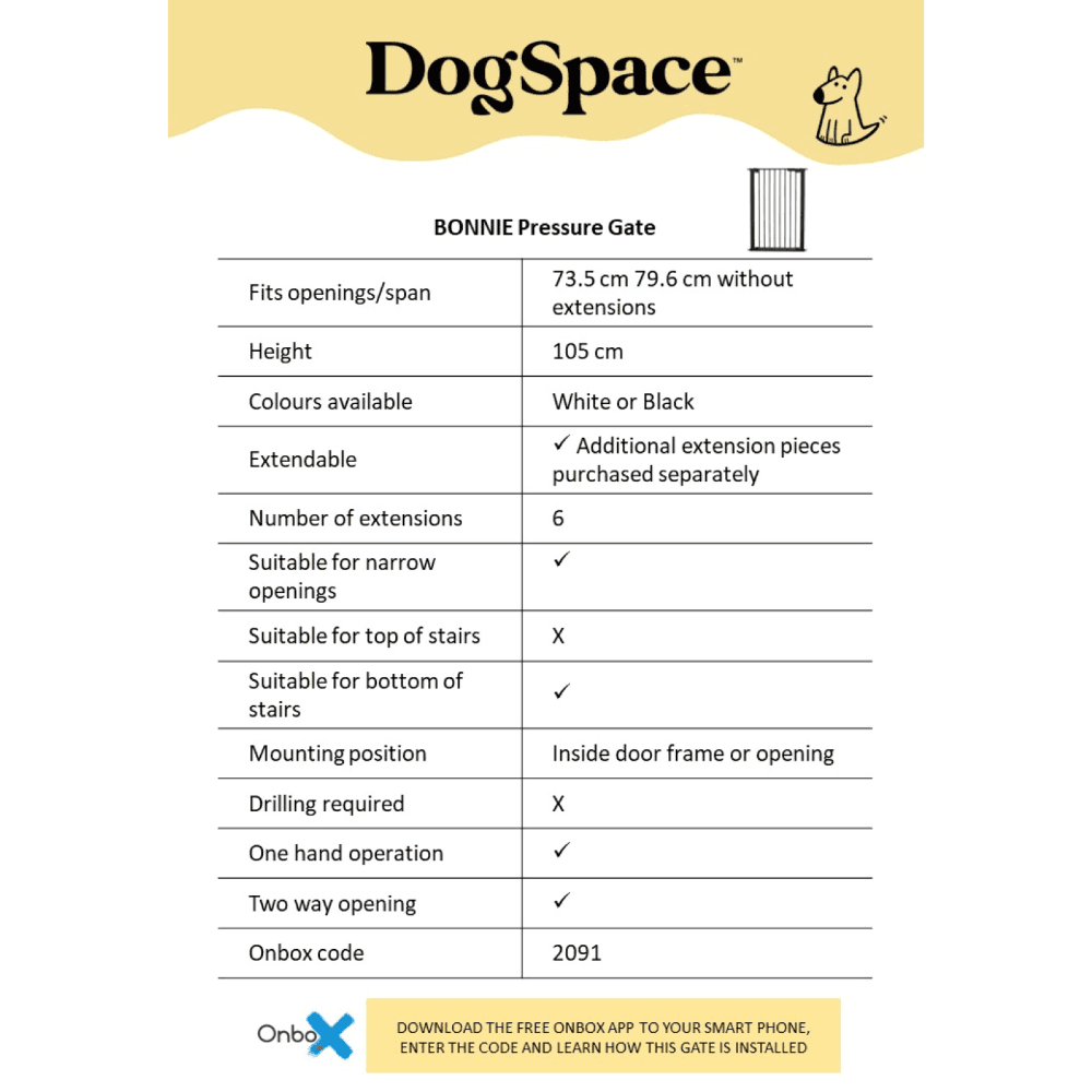 Keep your pet safely in their designated area with the DogSpace Bonnie Extra Tall gate. This versatile and elegant black safety gate offers a seamless blend of security and style, easily installed without needing tools or structural modifications.