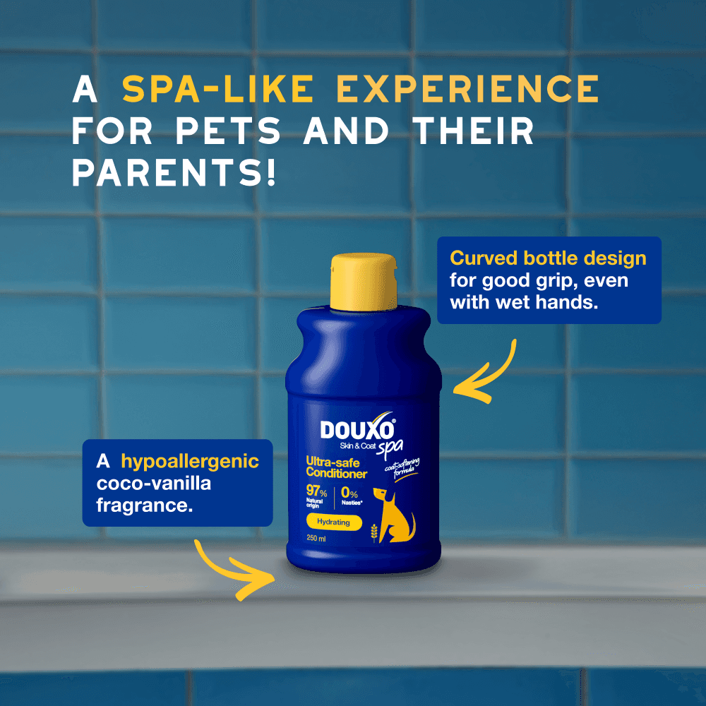 - This moisturising conditioner is an excellent companion to other products in the Douxo SPA range, such as the Douxo SPA shampoo, wipes, or mousse, for a comprehensive skin and coat care routine