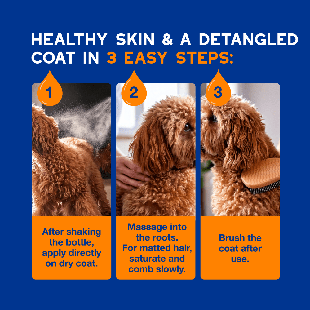 - This detangling spray works to safely and effectively loosen tangles and knots, making the brushing process easier and more comfortable for your dog