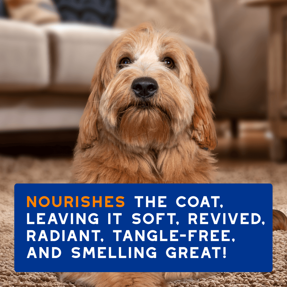 - The product leaves the dog's coat feeling soft, looking revived and radiant, and with a pleasant, fresh aroma
