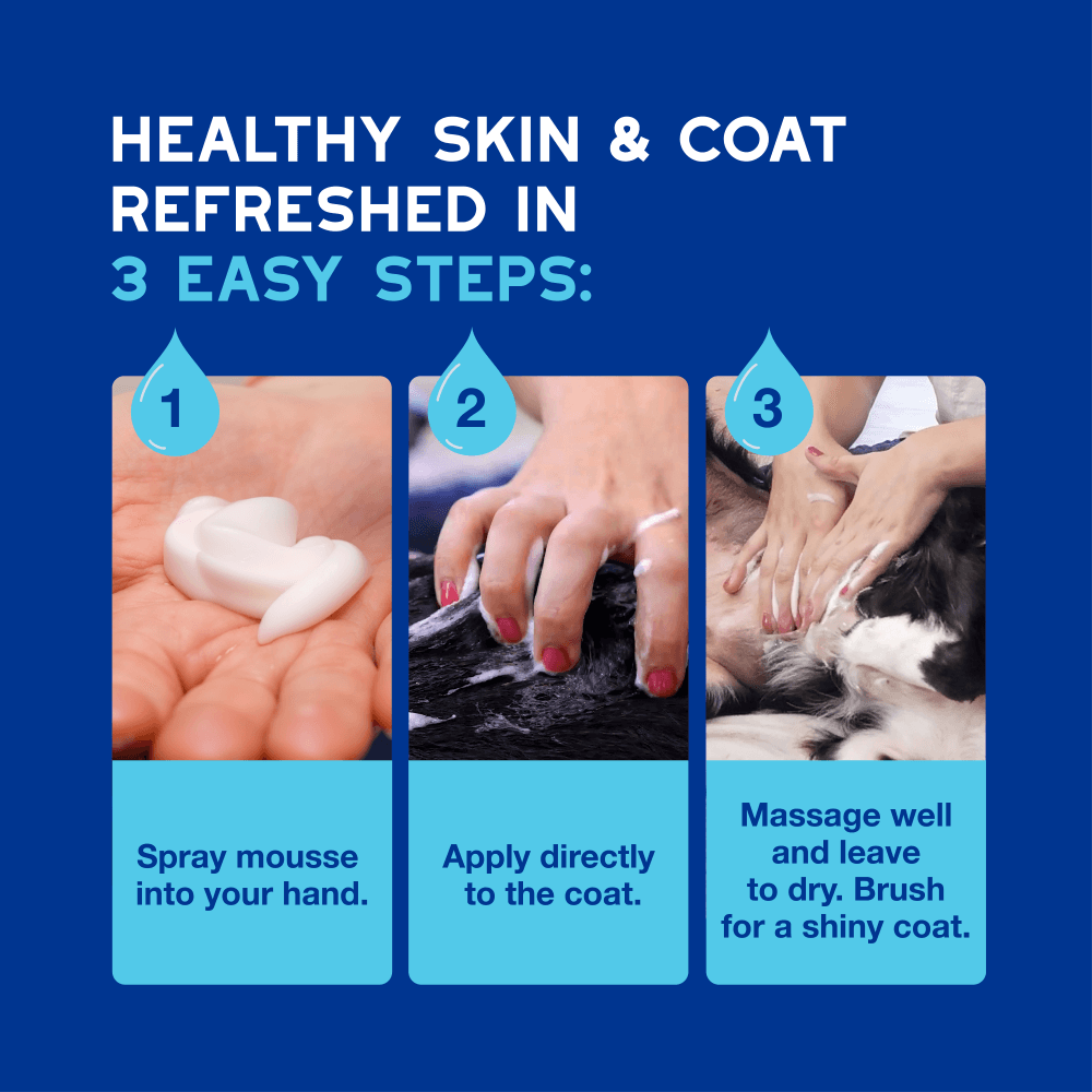 - Enriched with hydrolyzed sweet almond protein, the mousse works to condition and protect the dog's coat, promoting a soft and radiant finish
