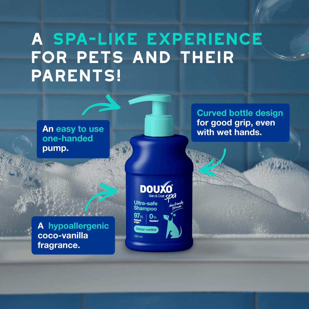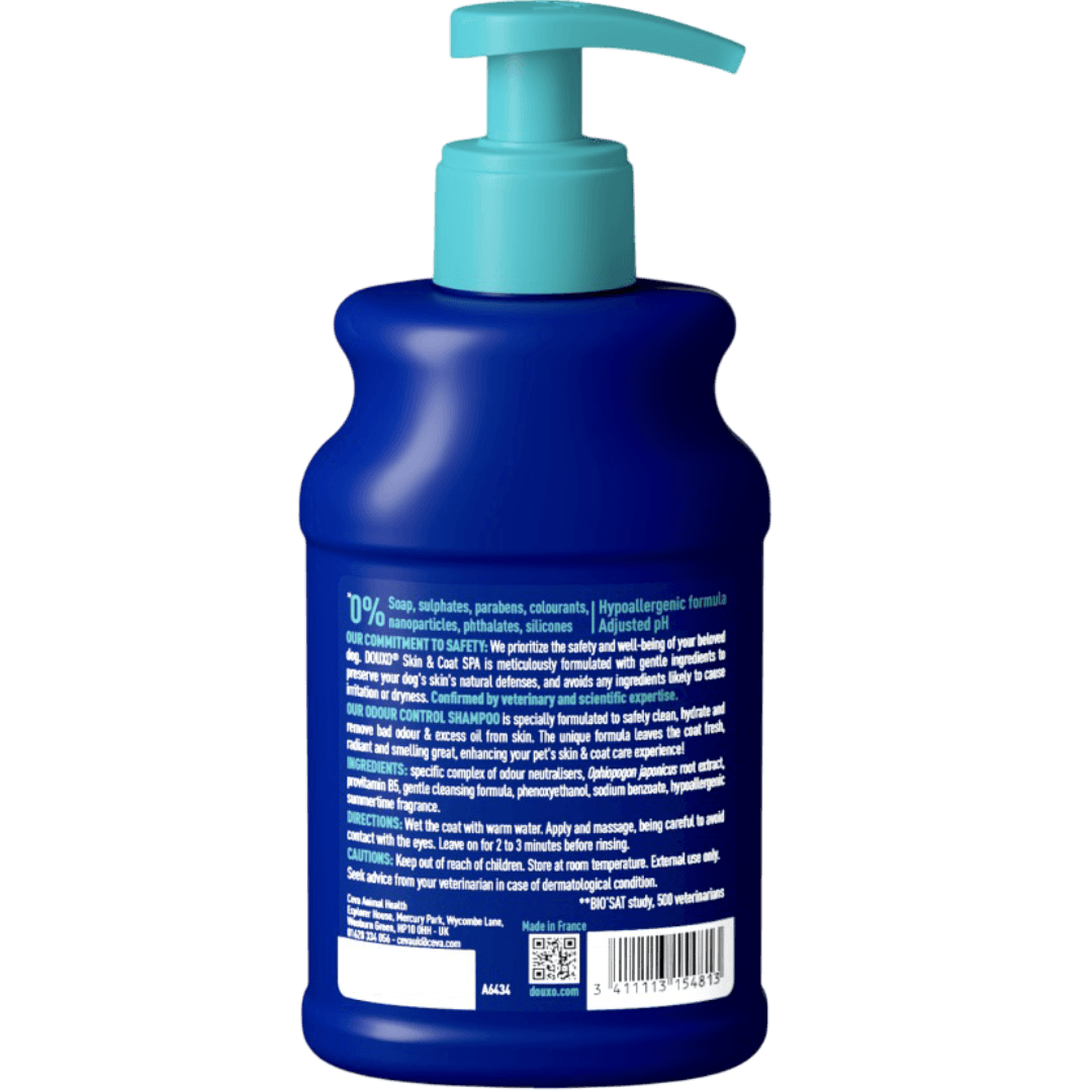 - Clinically tested by veterinarians, the Douxo Skin And Coat Spa Ultra Safe Odour Control dog'shampoo is proven for its safety and tolerance on a dog's skin and coat