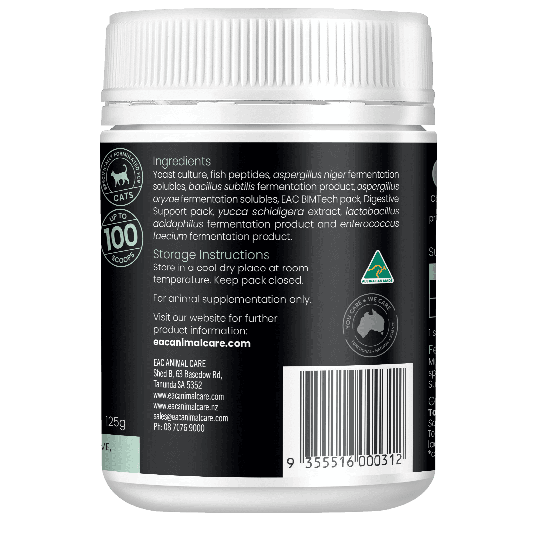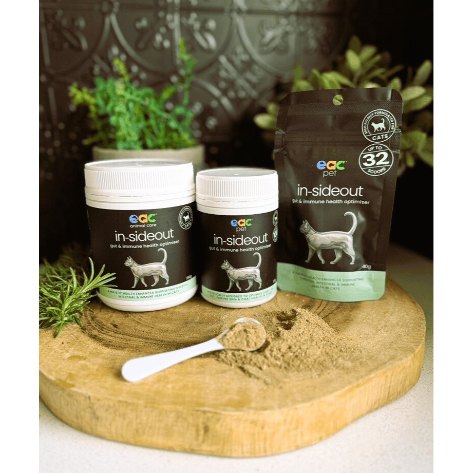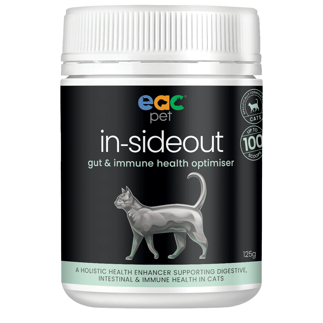 EAC's In-SideOut Cat Pre & Probiotic supplement elevates your cat's health by supporting digestive, intestinal, and immune function. This holistic formula is crafted to enhance your feline friend's overall well-being. Just sprinkle over or mix into your pets food too easy!