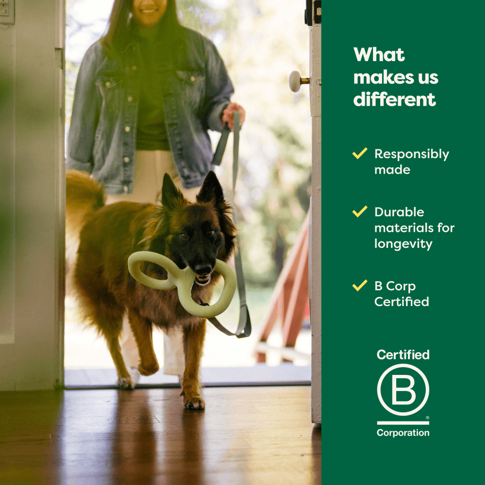 The Earth Rated Tug Toy is designed to make playtime better, featuring dual handles and an ergonomic shape for safe, comfortable tug-of-war with your pup. Made from responsibly sourced natural rubber, it's durable, dishwasher-safe, and even freezer-friendly for extra versatility.