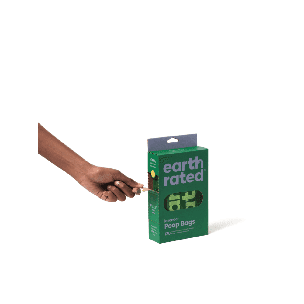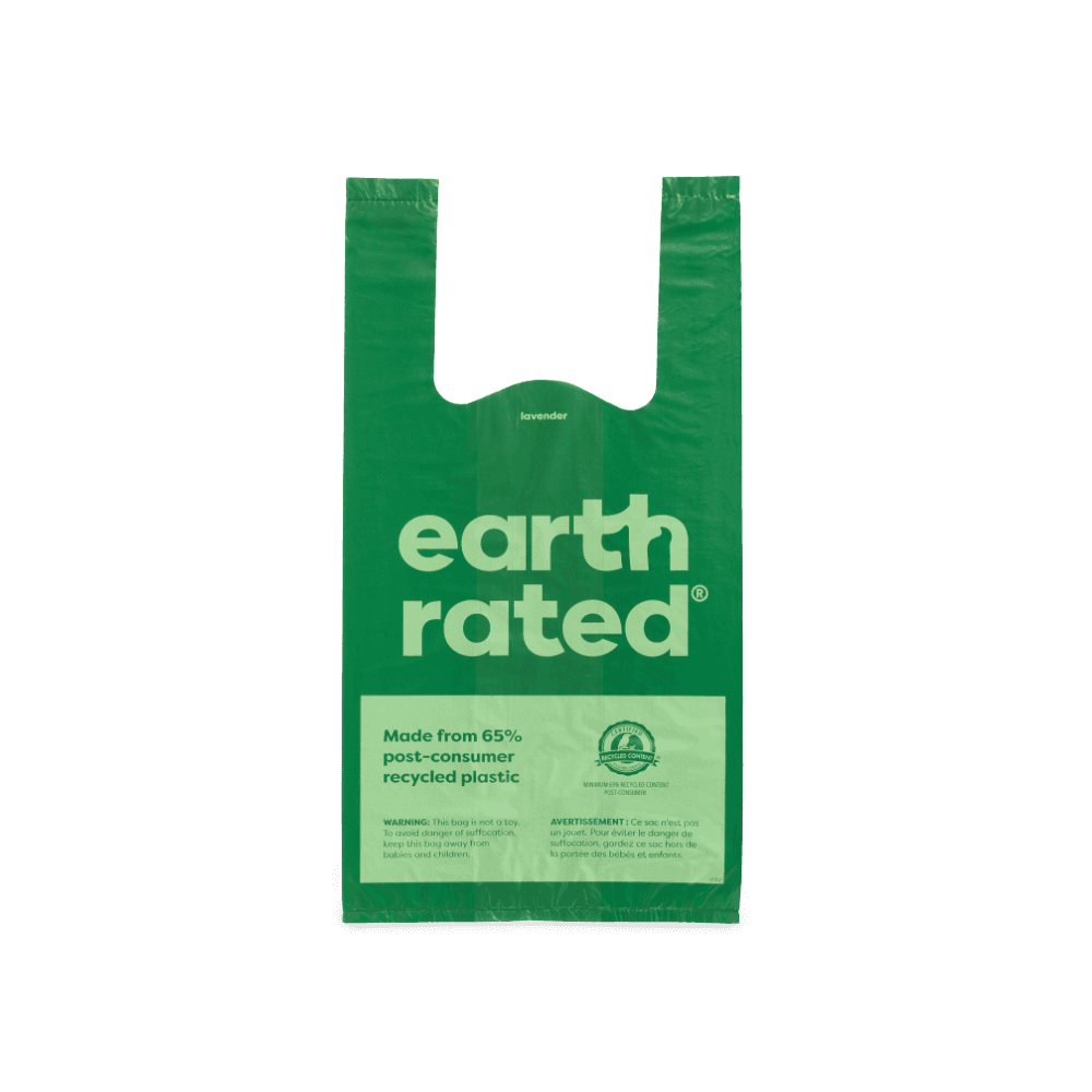 Earth Rated Lavender Scented Easy-Tie Handle Poop Bags make cleaning up after your pet easier, especially during winter months. The handles make picking up and carrying used bags a clean and smooth experience. These bags dispense straight out of the box and are extra long, extra strong, and 100% leak-proof guaranteed. They open extra wide to handle any size mess and are made from 65% certified post-consumer recycled plastic, giving a second life to more than 5 million pounds of landfill-bound plastic each year.