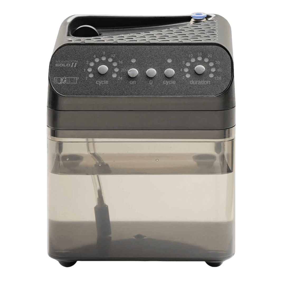 - This compact system can be expanded to connect a maximum of two nozzles, making the Exo Terra Monsoon Solo II suitable for two smaller terrariums.