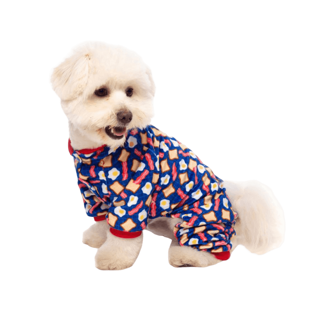 Keep your pup cosy in the FuzzYard Pyjamas Bacon And Eggs. Known for unique Melbourne designs and premium quality, FuzzYard offers these super soft pyjamas featuring a fun print, ensuring your dog slumbers in comfort and style. Perfect for chilly nights or just lounging around.
