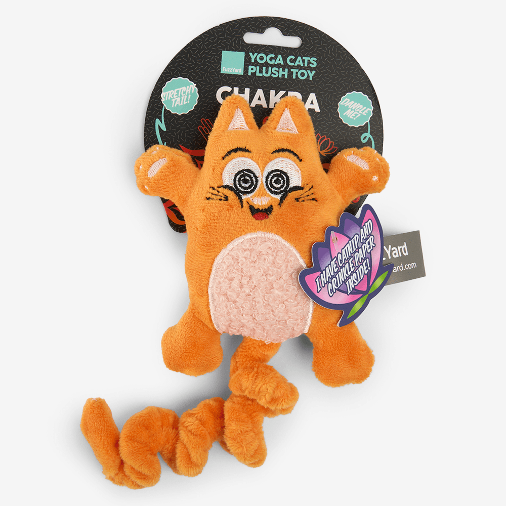 FuzzYard, known for Australian-designed quality and safe, fun pet products, presents the Yoga Cats Chakra Cat Toy. This plush toy, filled with premium catnip and crinkle sounds, offers engaging solo play for your feline friend with a quirky, colourful design