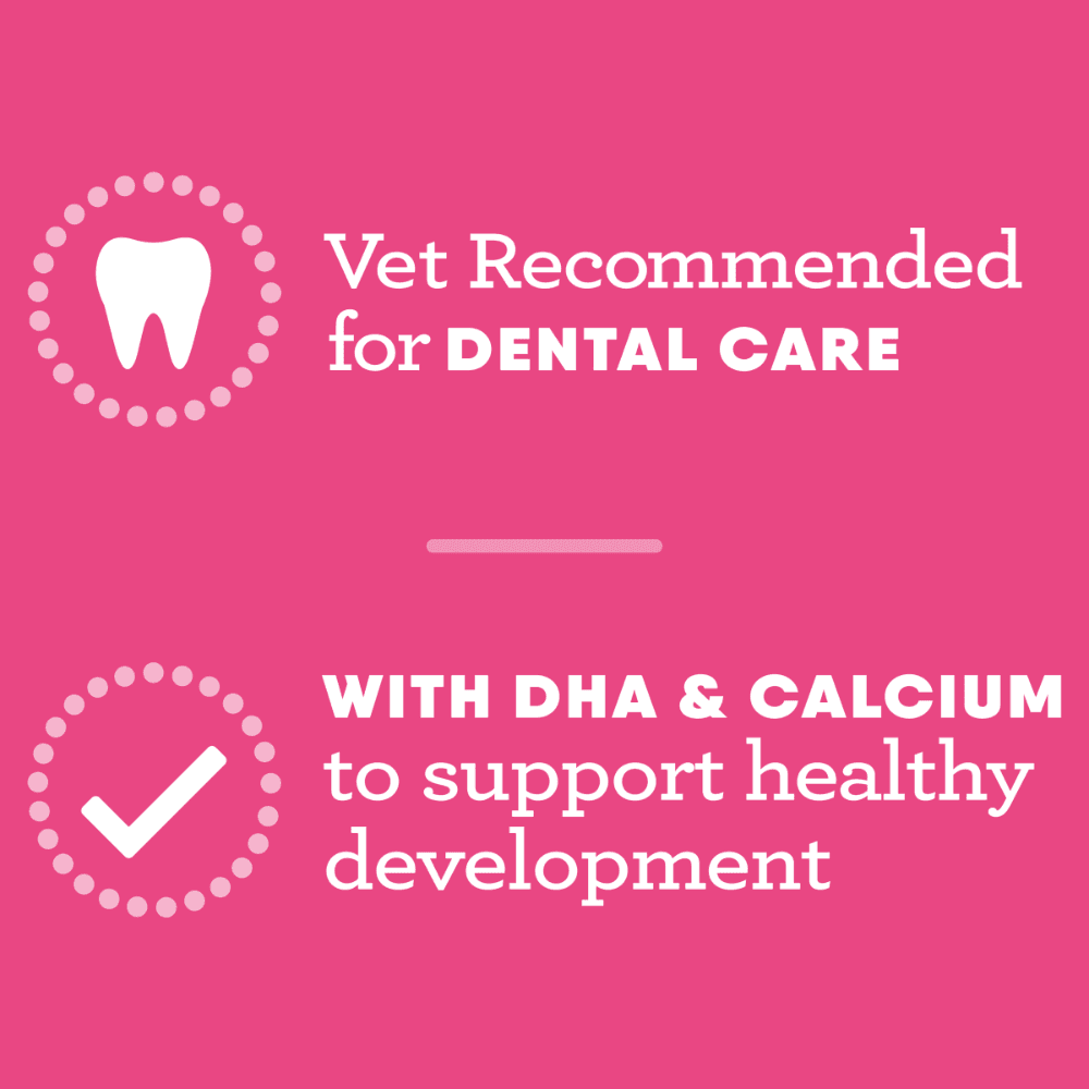 - Features a special soft and chewy texture that is gentle on a puppy's developing teeth and gums while helping to clean away plaque and tartar