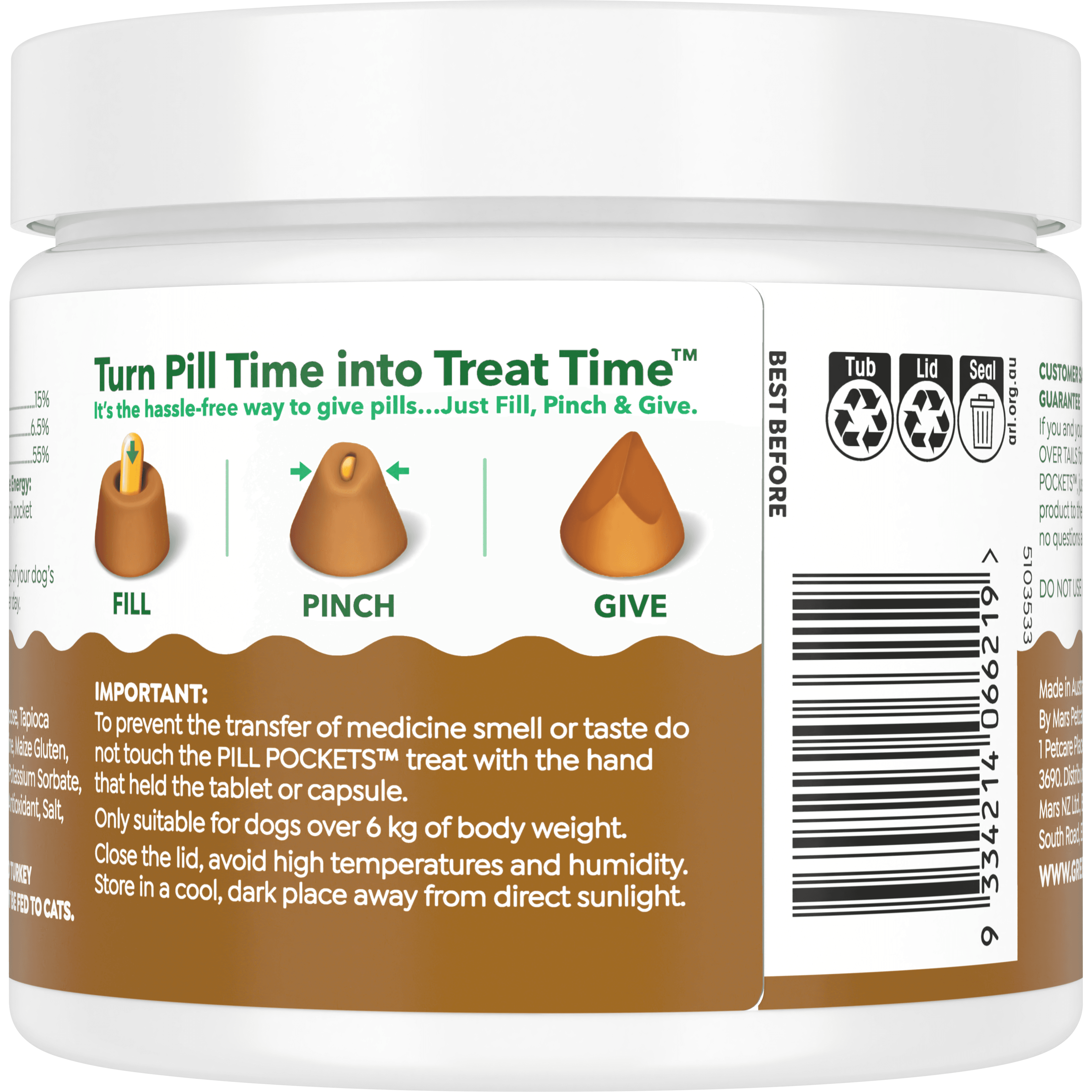 - Pliable texture allows the treat to be moulded around various pill shapes for a secure seal