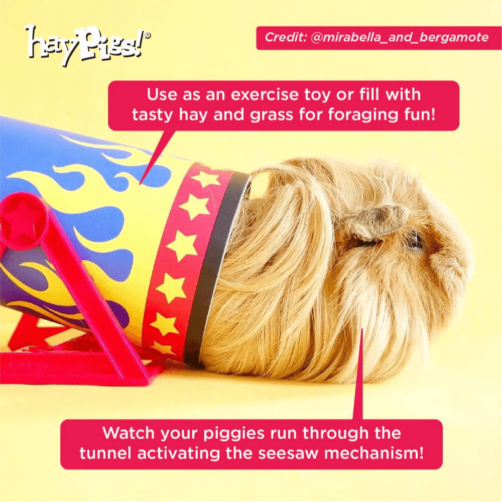 The HayPig Seesaw Tunnel is a quirky and stimulating toy designed to keep your guinea pigs entertained and engaged. This interactive tunnel encourages play and exercise, satisfying their natural instincts to explore, chew, and be generally adorable.