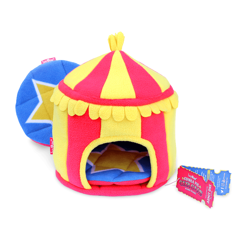 Circus Hidey Hut Roll up, roll up to see the HayPigs! See them perform fantastic feats like lifting the heaviest of weights, being fired from a canon and... not knocking over their food dish? HayPigs adorable range of accessories has been tested by guinea pigs, for guinea pigs. The brainchild of UK couple Rik and Helen, the HayPigs range was dreamt up by Rik after adopting two gorgeous rescue piggies, Neptune and Nutmeg. He endeavoured to make a collection of guinea pig products that were unique and exciting, as well as intelligently designed.