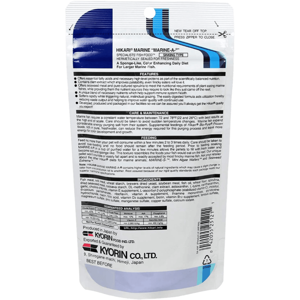 Provide superior nutrition with Hikari Marine A, a daily sinking pellet for larger marine fish. Backed by Hikari's extensive aquatic research and commitment to quality ingredients, this diet promotes vibrant colour and optimal health without clouding your aquarium water.