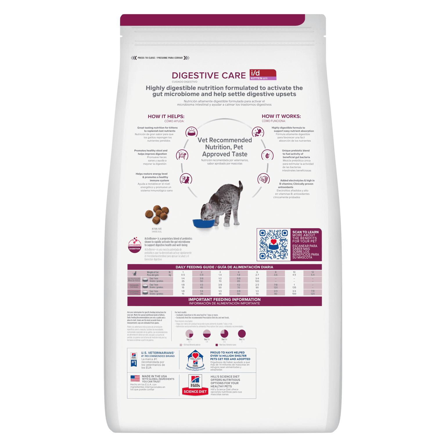 Hill's Prescription Diet i/d Digestive Care Dry Kitten Food provides highly digestible clinical nutrition specifically formulated to manage digestive upsets in growing kittens. It offers complete and balanced nutrition that supports easy nutrient absorption and helps soothe the digestive tract during development.