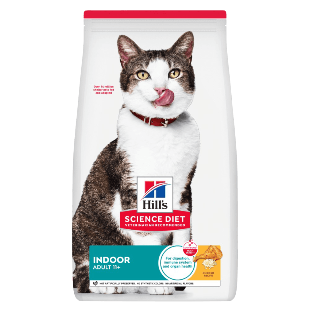Chicken, Whole Grain Wheat, Corn Protein Meal, Chicken Fat, Wheat Gluten, Powdered Cellulose, Brewers Rice, Chicken Meal, Chicken Liver Flavor, Dried Beet Pulp, Lactic Acid, Calcium Sulfate, Soybean Oil, Fish Oil, Potassium Chloride, Choline Chloride, Whole Grain Oats, Fructooligosaccharides (FOS), vitamins (Vitamin E Supplement, L-Ascorbyl-2-Polyphosphate (source of Vitamin C), Niacin Supplement, Thiamine Mononitrate, Vitamin A Supplement, Calcium Pantothenate, Riboflavin Supplement, Biotin, Vitamin B12 Supplement, Pyridoxine Hydrochloride, Folic Acid, Vitamin D3 Supplement), Iodized Salt, Taurine, Calcium Carbonate, DL-Methionine, minerals (Ferrous Sulfate, Zinc Oxide, Copper Sulfate, Manganous Oxide, Calcium Iodate, Sodium Selenite), L-Carnitine, Mixed Tocopherols for freshness, Natural Flavors, Beta-Carotene