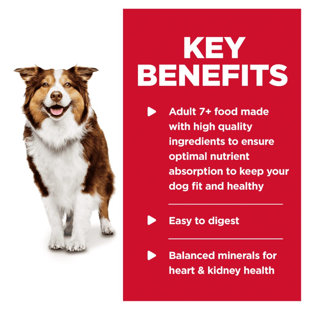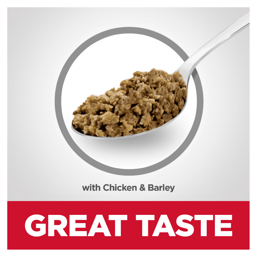 Hills Science Diet Senior 7 Plus Chicken And Barley Entree Canned Dog Food offers precisely balanced, science-led nutrition developed by vets. This tasty pate supports vital organ health and lean muscle in dogs aged 7+, using high-quality, easily digestible ingredients.
