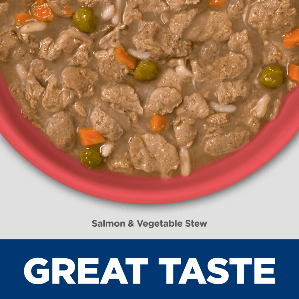 Hill's Science Diet Sensitive Stomach and Skin Puppy Salmon Stew is a premium wet food specifically formulated to provide balanced nutrition for growing puppies with digestive or skin sensitivities. This delicious stew combines high-quality protein with gentle ingredients to ensure your young pet receives the vital nutrients required for a healthy start in life.