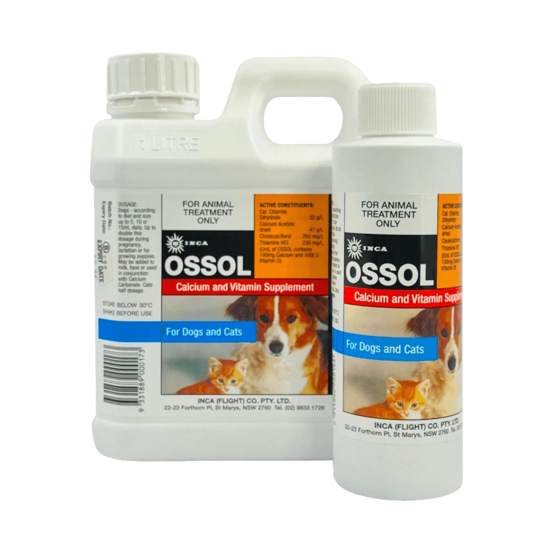 Inca Ossol Calcium & Vitamin Supplement is a vital supplement for dogs and cats, specially formulated to support calcium and vitamin intake, particularly for pregnant, lactating, or growing pets. It effectively addresses calcium deficiencies, ensuring optimal health for your furry friends. Just sprinkle over or mix into your pet's food-too easy!