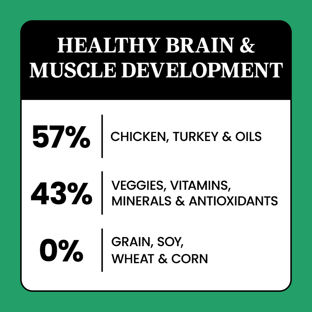 Instinctive Bite Grain Free Puppy Chicken, Turkey & Sweet Potato Dry Dog Food for Healthy Brain & Muscle Development is a specially formulated puppy diet developed with pet nutritionists to provide a complete and balanced meal for healthy brain and muscle development. Your puppy will love this delicious chicken, turkey & sweet potato grain free recipe loaded with natural prebiotics and DHA & fish oil to promote optimal brain and muscle development for growing pups.