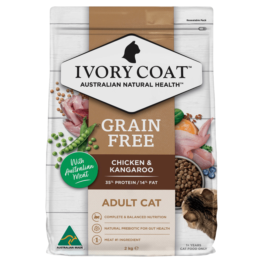Ivory Coat Adult Grain Free Chicken and Kangaroo Dry Cat Food is the perfect choice for discerning pet parents who want to provide their cats with a nutritious and delicious meal. This premium, Australian-made food is specifically formulated to meet the unique dietary needs of cats, delivering complete nutrition without compromising on taste. With Australian meat as the number one ingredient, this dry cat food offers an ideal balance of high-quality protein, essential vitamins, and minerals for your cat's overall health and vitality.