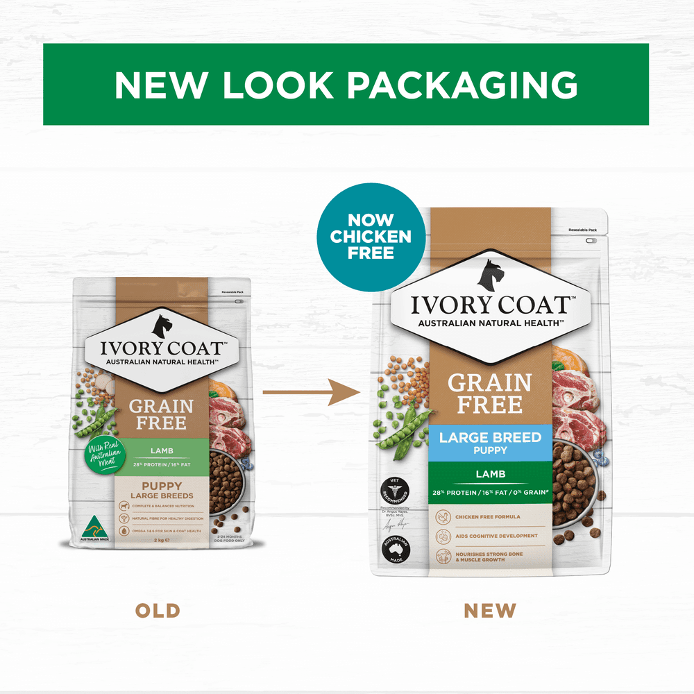 Ivory Coat Lamb Grain Free Puppy Large Breed Dry Dog Food is made for growing big pups who need gentle, nourishing fuel for healthy development. This Aussie made recipe puts real lamb first and keeps things clean with a grain free, natural formula that is easy on sensitive tummies. With no artificial colours or flavours, it supports strong growth, shiny coats and happy, thriving large breed puppies.