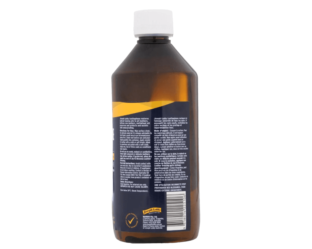Joseph Lyddy Leathaphane is designed to restore natural tanning oils to all leathers, protecting, softening, and revitalizing both new and old leather items. It also preserves and assists with waterproofing leather.