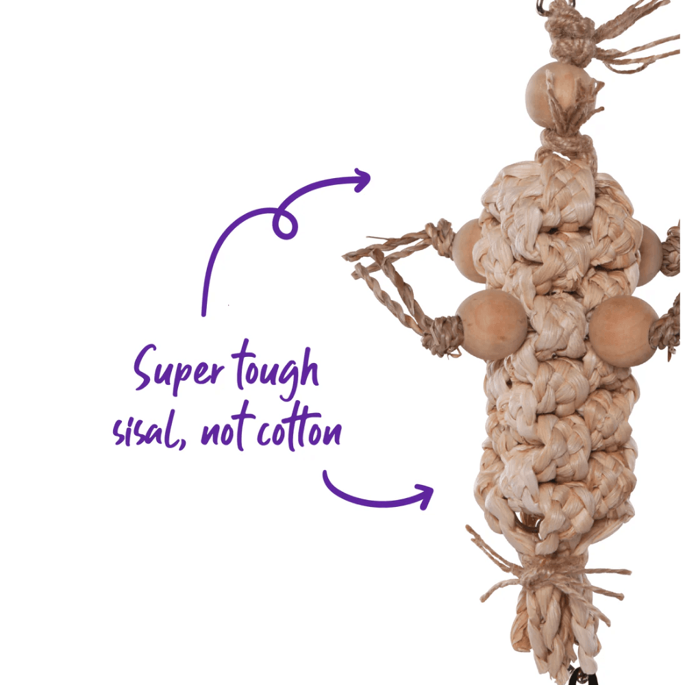 The Kazoo Bird Toy Natural Pacifier with Beads is a stimulating cage accessory for birds. Crafted from natural, bird-safe wood with colourful, non-toxic beads, it offers textures for chewing, climbing, and exploration. Easy to hang, this toy alleviates boredom, promotes beak health, and encourages activity for your feathered friend.