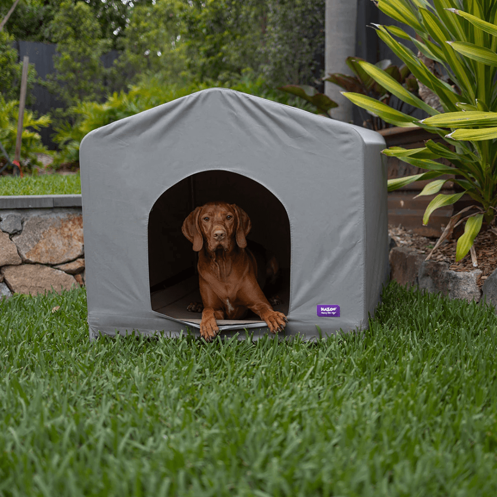 Generally, dogs hate being in the doghouse, but that's before they experience the Kazoo Cabana Dog House! This stylish, waterproof outdoor dog kennel is strong, comfy, and designed to keep pets cool in summer and warm in winter. With its durable waterproof fabric and breathable design, it ensures pets stay dry when it rains and enjoy a shady spot in the heat of summer.