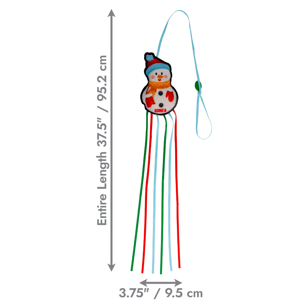 - The dangling, colourful ribbons are designed to encourage batting and chasing play