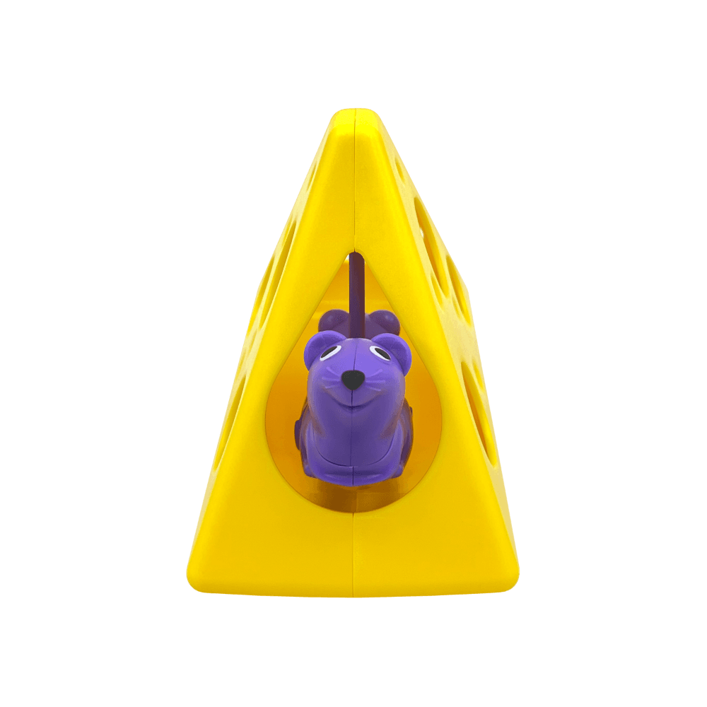 - This cheese-shaped toy wobbles and rocks, encouraging your cat to bat and play
