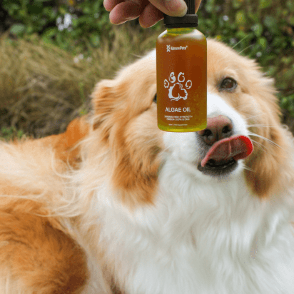 Korure Pets Algae Oil is a 100% pure plant-based Omega-3 supplement designed to support the overall health of dogs. This sustainable New Zealand-made formula provides a high-strength alternative to fish oil, delivering essential fatty acids directly from marine algae.