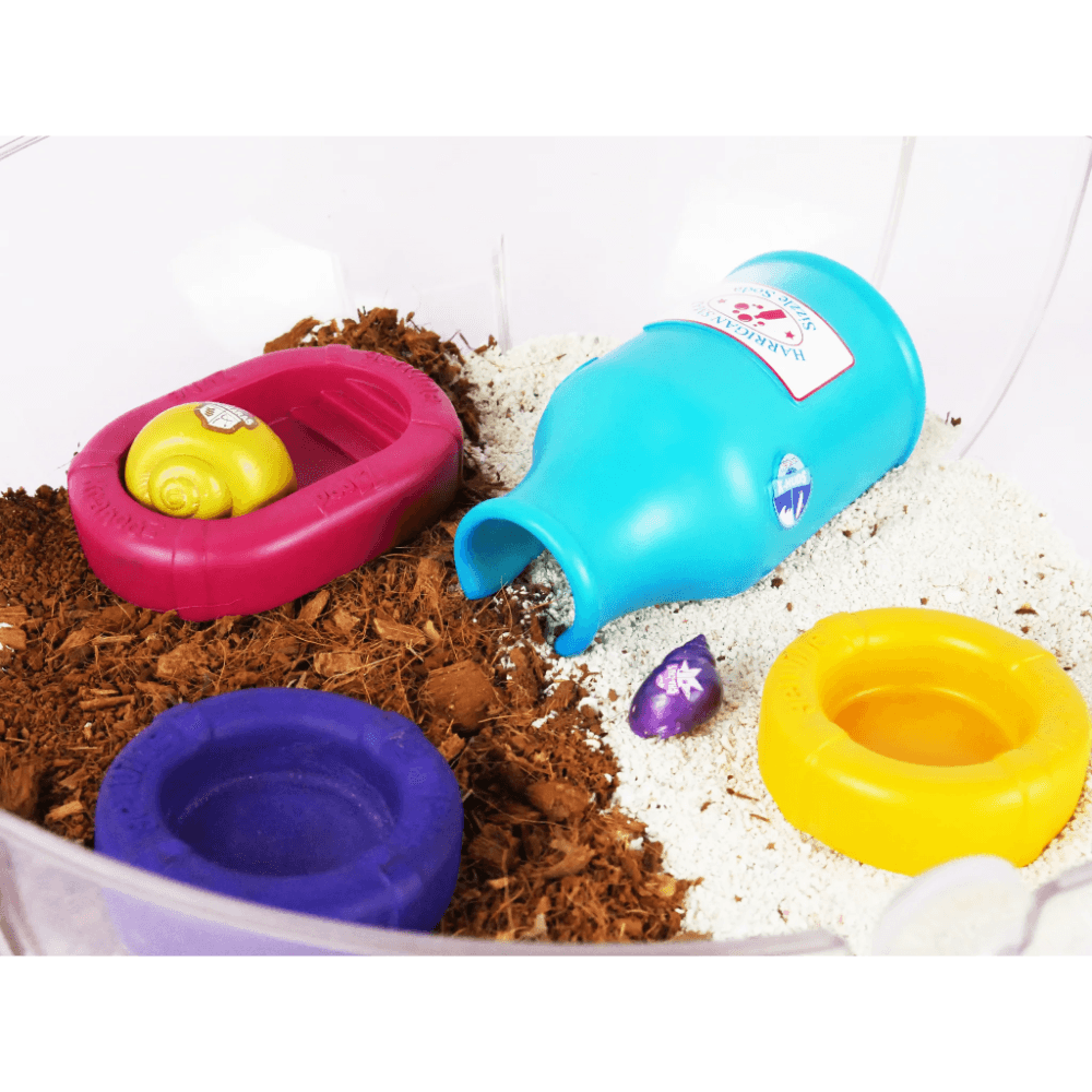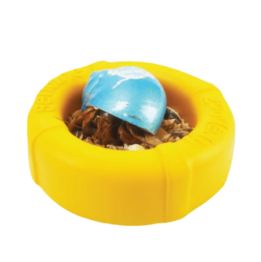 The Krabooz Food & Water Bowl, a fun, circular design made from non-toxic resin, is perfectly sized for your hermit crab to easily access food and water, preventing spills