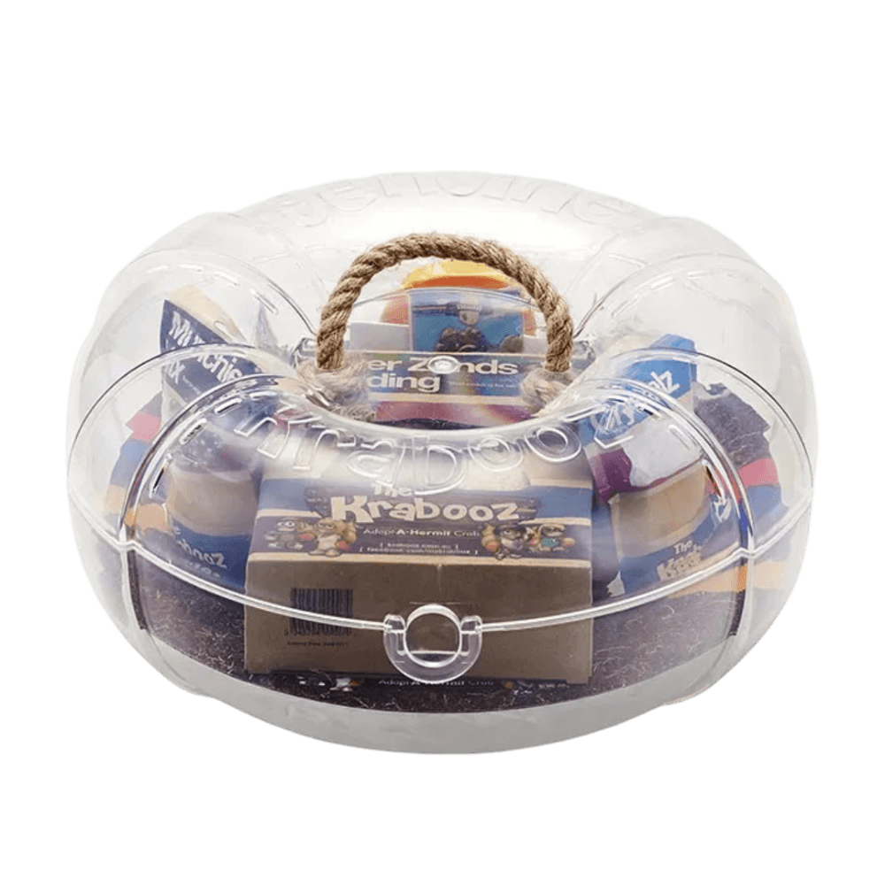 The Krabooz Pink Tribe Base Kit is the perfect starter pack for first-time hermit crab owners, delivering all the essentials in bright Pink Tribe style (also available in Blue Tribe).