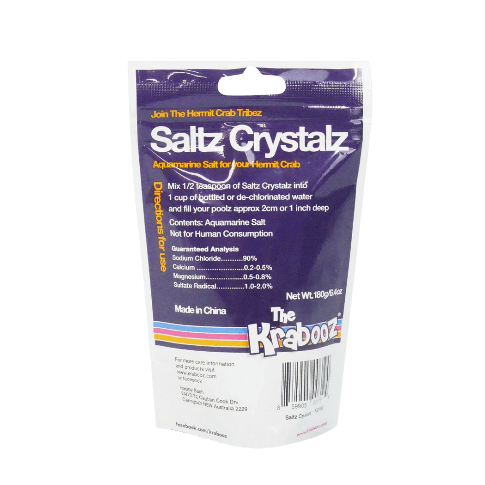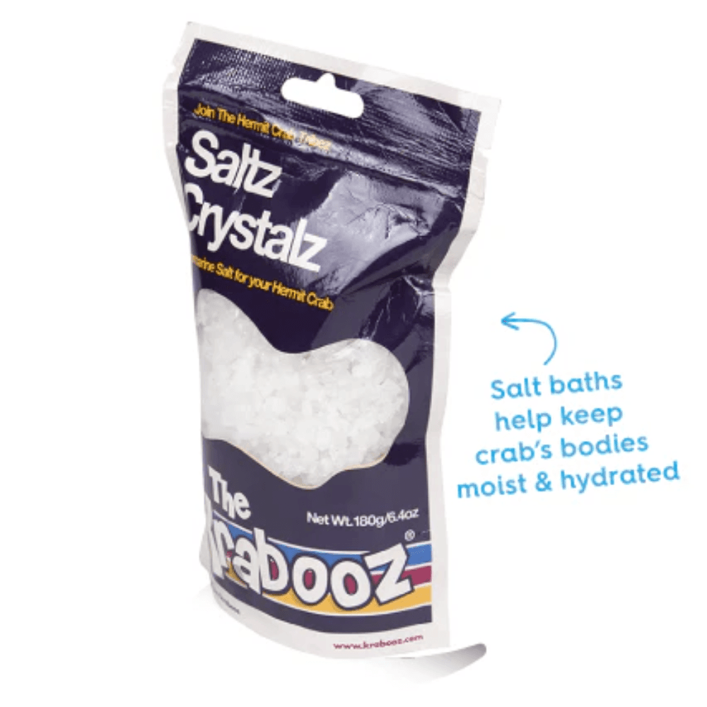 Give your hermit crabs a healthy soak with Krabooz Saltz, a nutritionist-approved marine salt additive designed for optimal crab development and molting support. Simply sprinkle a small amount into dechlorinated water to create €œocean water€ for your Krabooz to bathe in.