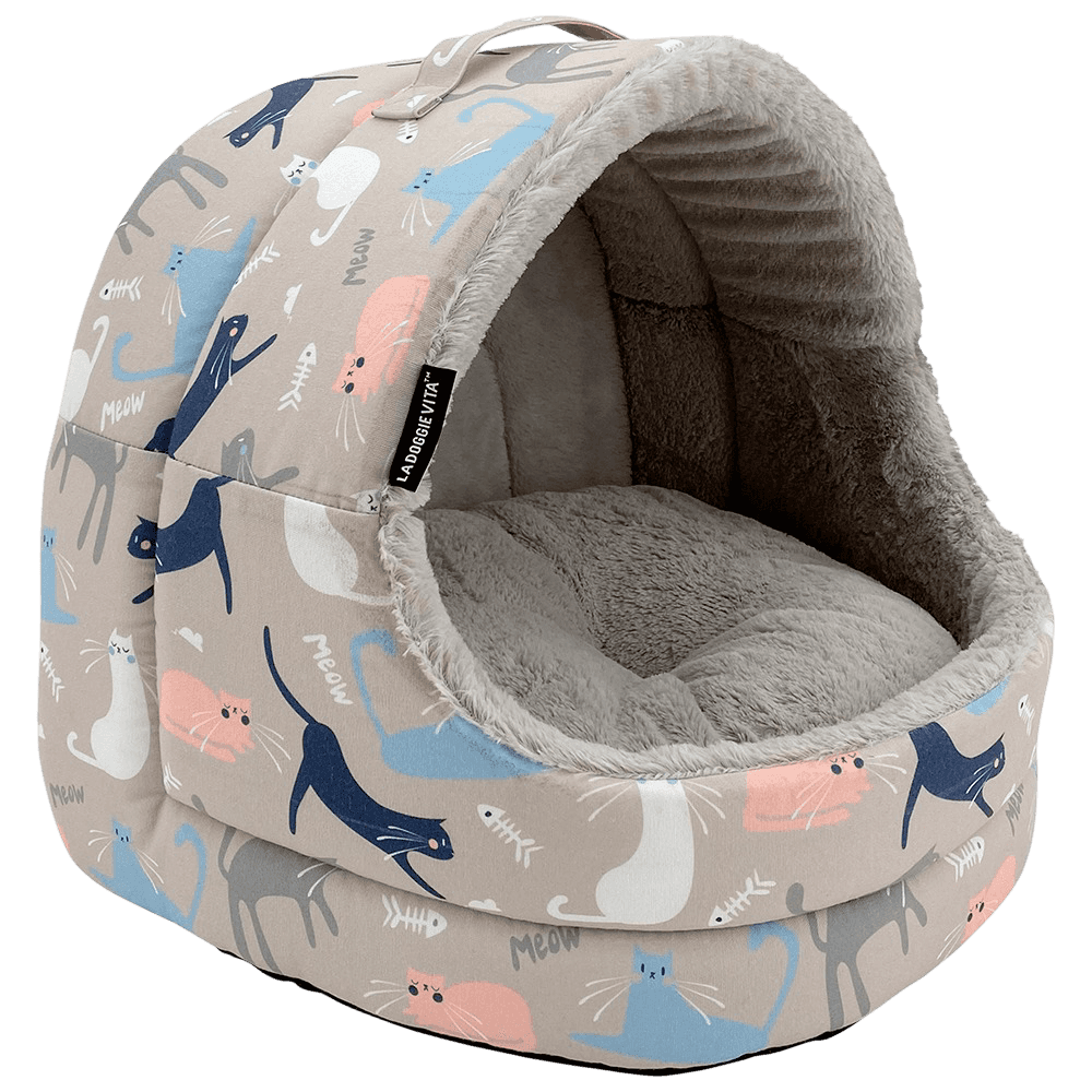 La Doggie Vita Catisse Hooded Cat Bed in Taupe