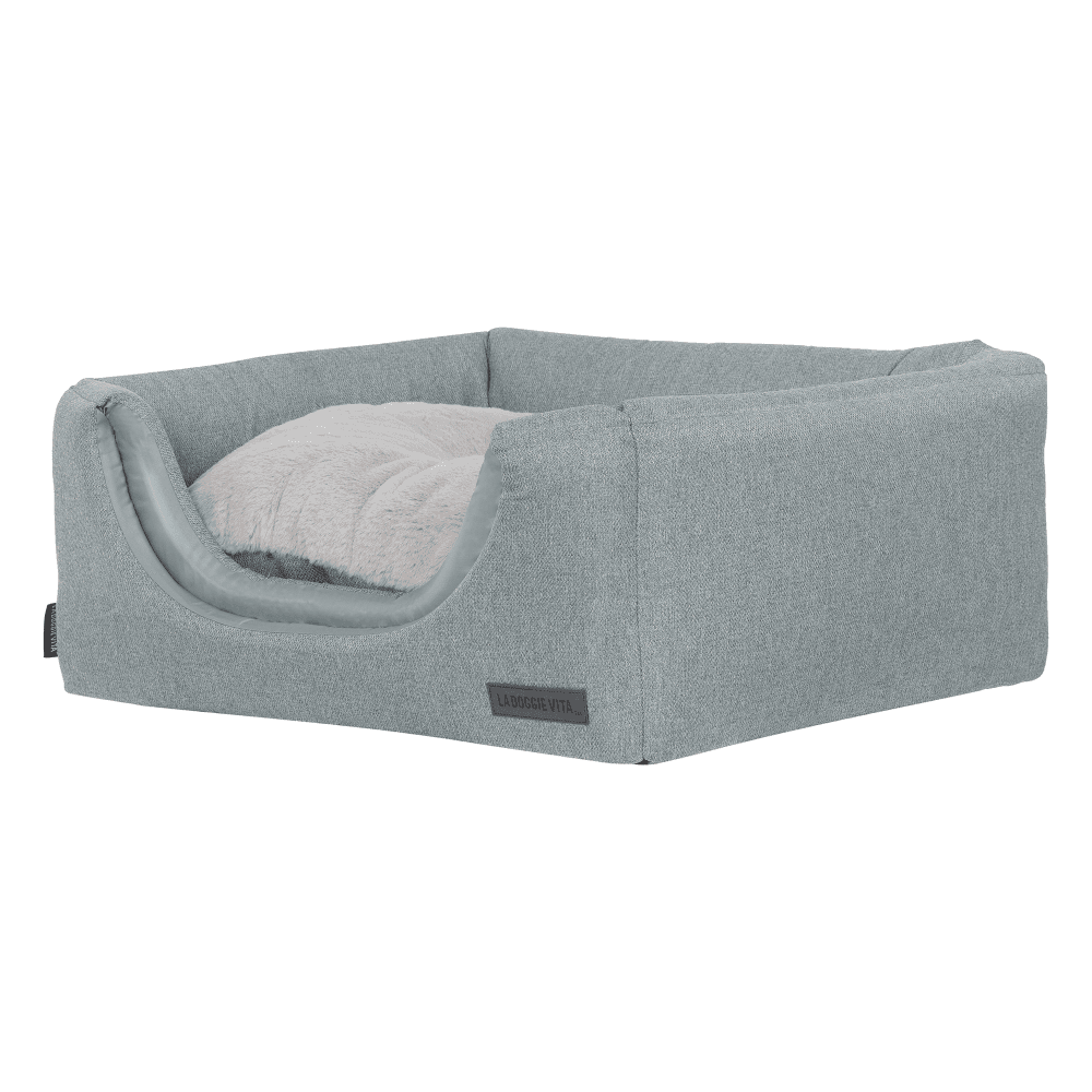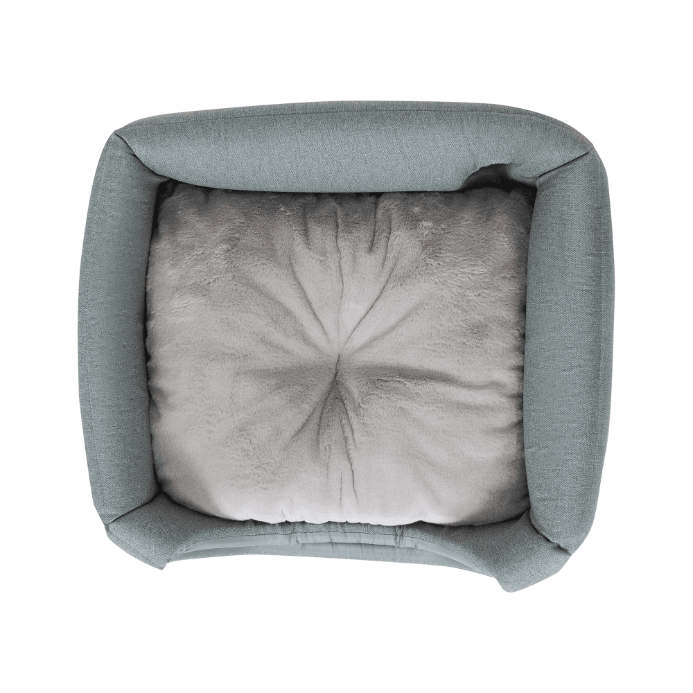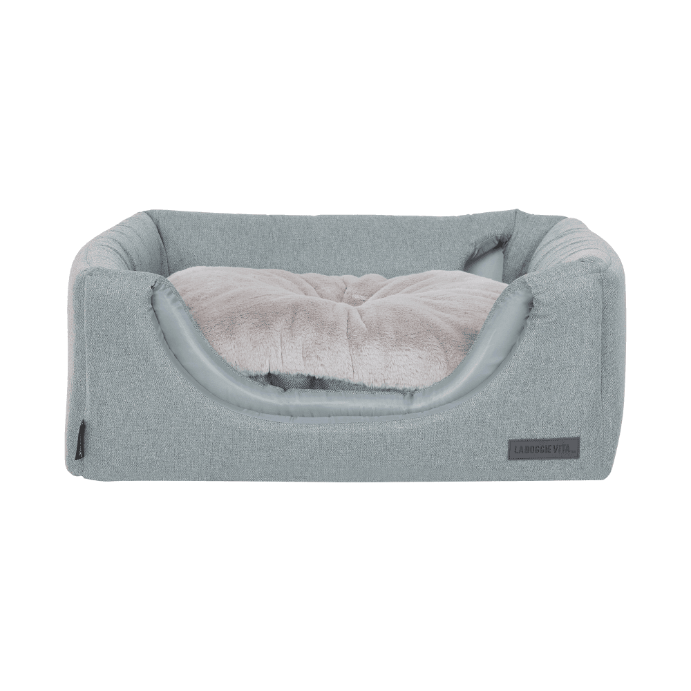 - An internal reversible cushion is lined with plush grey faux fur to provide a soft and warm sleeping surface for your dog