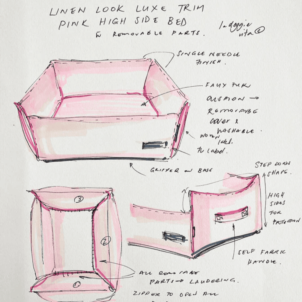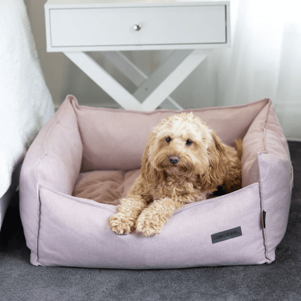 La Doggie Vita Como Linen Look High Side Pet Bed With Removable Parts in Pink